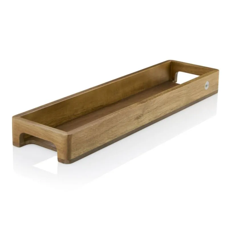 Egal, ob man Getränke oder Snacks serviert, Gewürze verstaut oder saisonal dekoriert, das schmale Dekotablett Serve von AdHoc ist vielseitig zu verwenden. Die edle Kombination aus Akazien- und Walnussholz wird vom schlichten Design des Tabletts unterstrichen. Seitliche Griffaussparungen sorgen für einen sicheren und einfachen Transport. Das Serviertablett ist 50 cm lang und 13 cm breit.