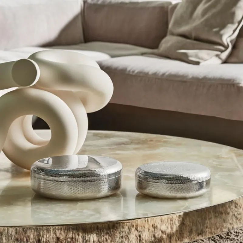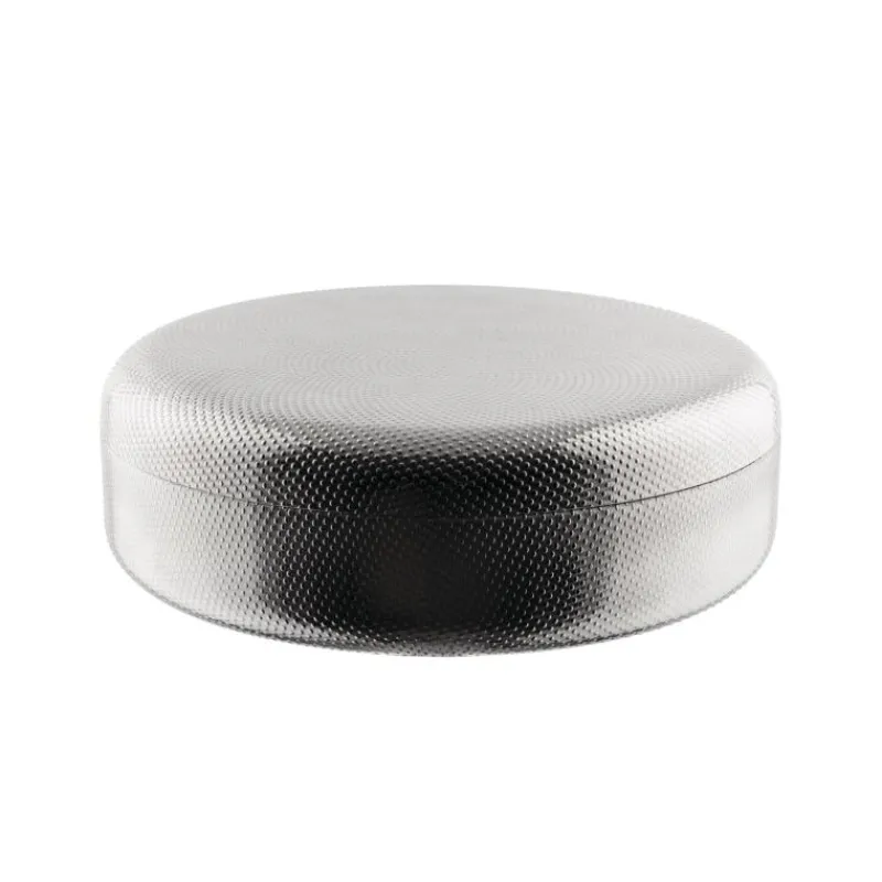 Alessi erfindet mit der Serie Extra Ordinary Texture die antike Technik der Granulation neu, für die vor allem die Etrusker aus dem heutigen Mittelitalien weltberühmt waren. Bei dieser Art der Metallverarbeitung werden kleine Kügelchen auf ein Metallblech gelötet, so entstehen Ornamente und geometrische Muster, die dem jeweiligen Objekt eine stark plastische Wirkung verleihen. Das granulierte Motiv auf dem silberfarbenen Behälter ist im goldenen Schnitt angeordnet, was der gleichmäßigen Reliefoberfläche eine besondere Harmonie verleiht. In dem schlichten Behälter mit einem Durchmesser von 23 cm können nicht nur Lebensmittel, sondern auch kleine Andenken, Schmuck und andere Accessoires stilvoll aufbewahrt werden. Die vielseitige Dose aus glänzendem Edelstahl kann bei Bedarf auch in der Spülmaschine gereinigt werden.