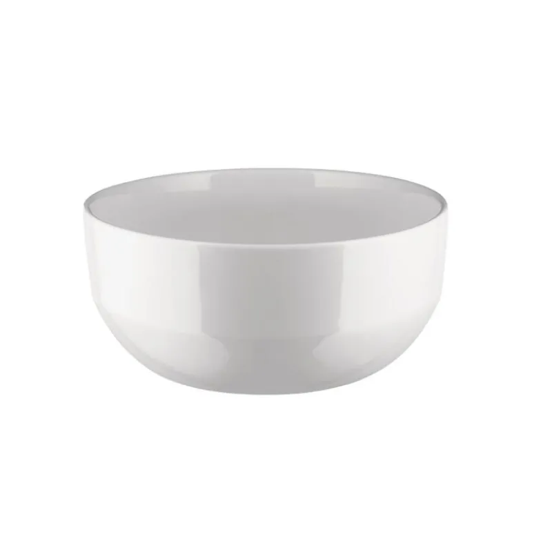 Das neue Porzellangeschirr Itsumo (jap. Für „täglich“ oder „für immer“) von Naoto Fukasawa für Alessi ist zeichnet sich durch geschwungene Linien in einem schrägen Winkel aus, die als „donkaku“ auf Japanisch bekannt ist. Diese kleine Kante, die an jedem Artikel zu finden ist, macht aus dem schlichten Alltags-Geschirr ein Design-Objekt, das einen besonderen Fokus auf die Haptik legt. Zusätzlich zur schlichten Variante aus weißem Porzellan gibt es eine verzierte Version, so können die einzelnen Elemente gemischt werden und es ist möglich, ein ganz persönliches Service zusammenzustellen. Die kleine, weiße Servierschüssel mit einem Durchmesser von 20 cm ist nicht nur für Salat in allen Variationen sondern auch zum ästhetischen Anrichten von Beilagen, Suppen und Desserts geeignet. Sie lässt sich mit 1950 ml leckerer Speisen befüllen. Wie alle Teile des Services Itsumo kann sie in der Spülmaschine gereinigt werden und ist mikrowellengeeignet.