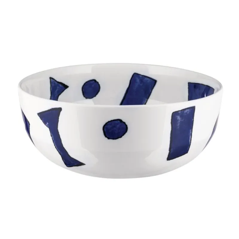 Das neue Porzellangeschirr Itsumo (jap. Für „täglich“ oder „für immer“) von Naoto Fukasawa für Alessi ist zeichnet sich durch geschwungene Linien in einem schrägen Winkel aus, die als „donkaku“ auf Japanisch bekannt ist. Diese kleine Kante, die an jedem Artikel zu finden ist, macht aus dem schlichten Alltags-Geschirr ein Design-Objekt, das einen besonderen Fokus auf die Haptik legt. Zusätzlich zur schlichten Variante aus weißem Porzellan gibt es eine verzierte Version, so können die einzelnen Elemente gemischt werden und es ist möglich, ein ganz persönliches Service zusammenzustellen. Das geometrische, blaue Muster wurde in Zusammenarbeit mit dem über hundertjährigen Künstler Samiro Yunoki entworfen und ist eime Hommage an die Poesie der japanischen Kultur. Die große Servierschüssel mit einem Durchmesser von 25 cm ist nicht nur für Salat in allen Variationen sondern auch zum ästhetischen Anrichten von Beilagen, Suppen und Desserts geeignet. Sie lässt sich mit 3450 ml leckerer Speisen befüllen. Wie alle Teile des Services Itsumo kann sie in der Spülmaschine gereinigt werden und ist mikrowellengeeignet.