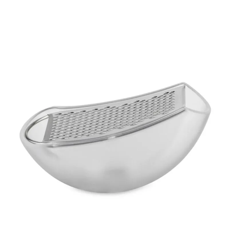 Die Käsereibe Parmenide wird von Alessi nach einem Entwurf des argentinischen Designers Alejandro Ruiz gefertigt. Ihre runde, weiche Form liegt gut in der Hand, sodass problemlos während des Essens Käse gerieben werden kann. Aufgefangen wird der Käse in der unter der metallenen Reibe liegenden Käsedose, dort kann er aufbewahrt oder durch die anliegende Öffnung direkt auf den Teller gegeben werden. Mit ihrer stabilen Fertigung und zeitlosen Eleganz bereichert diese Käsereibe jedes moderne Esszimmer.