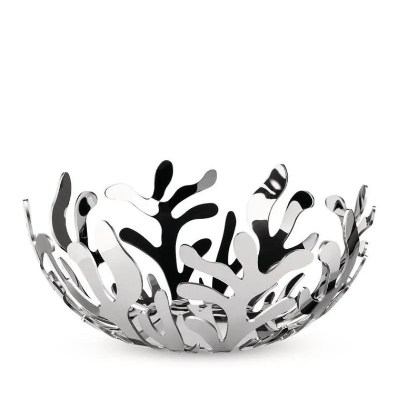 Das Design der Obstschale Mediterraneo ist der in im Mittelmeerraum beheimateten Korallen nachempfunden. Einst wurden sie im Tausch gegen edle Gewürze und Parfüms in die ganze Welt exportiert. Die Designerin Emma Silvestris hat sich vorgenommen, die eindrückliche Form dieser Korallen und die Leichthaftigkeit ihrer Bewegung in einem Entwurf einzufangen, der eine ganze Serie von hochwertigen Wohnobjekten inspirierte. Die Obstschale besteht aus hochglänzend poliertem Edelstahl und hat einen Durchmesser von 29 cm. Durch ihre durchbrochene Form wird das in ihr befindliche Obst von allen Seiten belüftet und bleibt somit länger frisch. Aber auch ohne Inhalt ist die Mediterraneo-Schale ein elegantes Wohnaccessoire, das alle Blicke auf sich zieht.