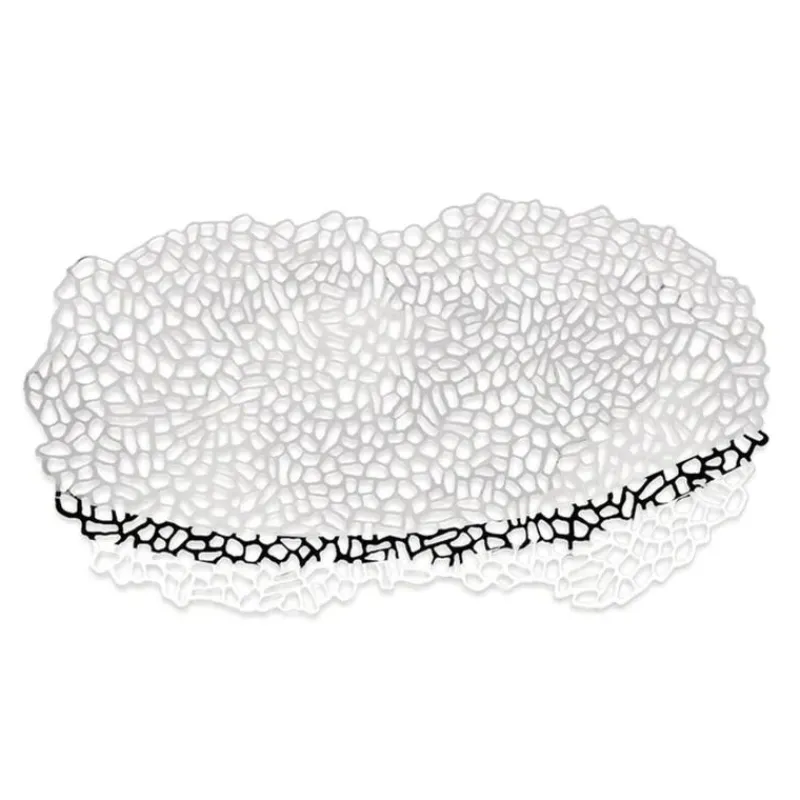Für das zarte Design des Tafelaufsatzes Opus von Alessi ließ sich der Designer Guido Venturini von feiner Spitze und Häkelarbeiten inspirieren. Das ungewöhnliche, durchbrochene Muster der Schale wird in einem aufwendigen Laserschneidverfahren erstellt, mit dem der hochglänzend polierte Edelstahl bearbeitet wird und so seine Form erhält. Mit ihrer imposanten Größe von 60 cm ist Opus bestens dazu geeignet, in der Tischmitte alle Blicke auf sich zu ziehen. Mit ihrer durchbrochenen Ablagefläche ist der Tafelaufsatz auch perfekt als Obstschale geeignet, denn die Früchte werden von allen Seiten belüftet und bleiben so länger frisch.
