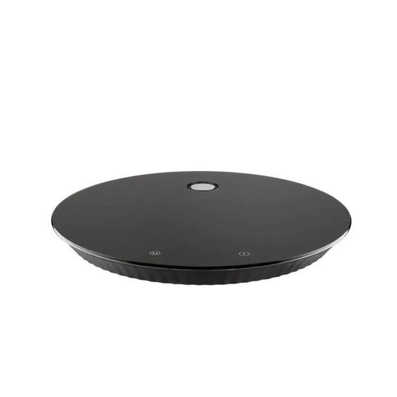 Die von Michele De Lucchi entworfene und aus thermoplastischem Harz gefertigte Plissé-Küchenwaage in der Farbe Schwarz verbindet funktionale Aspekte mit einem plastischen und faszinierenden Design, das die Ausbildung des Autors zum Architekten sowie seine Leidenschaft für Handwerk und Skulptur offenbart. Eine Waage wie ein von einem Modeschöpfer kreierten Kleid, ein wundervoller Gegenstand, der auf der Arbeitsplatte in der Küche zum Blickfang wird. Zudem kann die Waage über eine beiliegende magnetische Halterung an der Wand hängend und somit platzsparend aufbewahrt werden, was sie auch zu einem dekorativen Objekt macht. Sie wird über ein beiliegendes USB-C Kabel aufgeladen, ihr integriertes Display ist mit zwei Touchscreen-Tasten ausgestattet, mit dem die Waage ein- und ausgeschaltet, die Tara-Funktion bedient und die Maßeinheit ausgewählt werden kann. Die rutschfesten Füße sorgen für einen sicheren Stand, die große Auflagefläche aus gehärtetem Glas macht die Waage zu einem unverzichtbaren Werkzeug in der Küche. Die digitale Küchenwaage hat einen Durchmesser von 27,5 cm und ist 2,8 cm hoch.