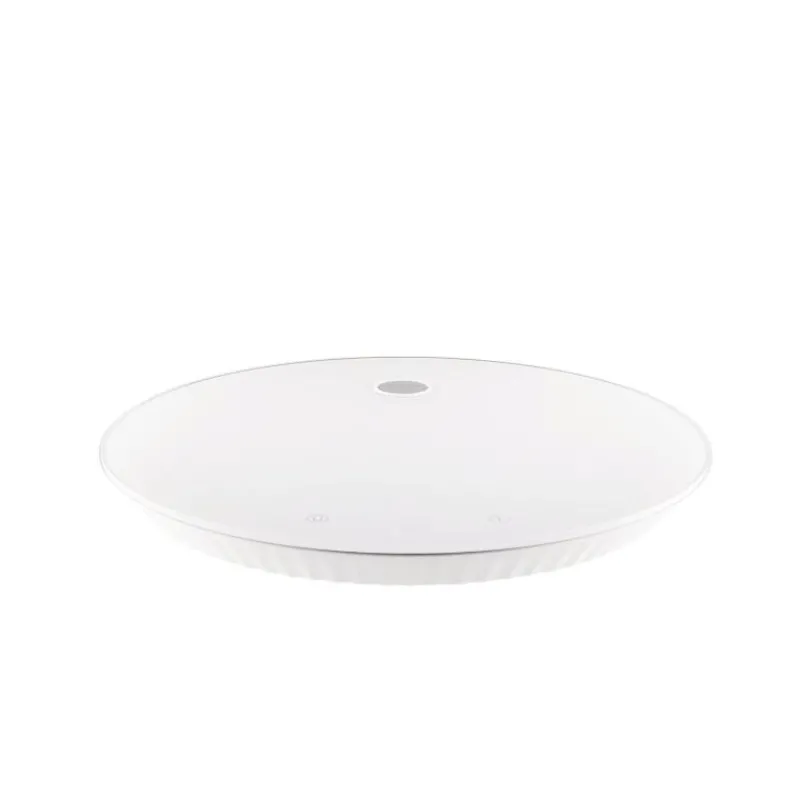 Die von Michele De Lucchi entworfene und aus thermoplastischem Harz gefertigte Plissé-Küchenwaage in der Farbe Weiß verbindet funktionale Aspekte mit einem plastischen und faszinierenden Design, das die Ausbildung des Autors zum Architekten sowie seine Leidenschaft für Handwerk und Skulptur offenbart. Eine Waage wie ein von einem Modeschöpfer kreierten Kleid, ein wundervoller Gegenstand, der auf der Arbeitsplatte in der Küche zum Blickfang wird. Zudem kann die Waage über eine beiliegende magnetische Halterung an der Wand hängend und somit platzsparend aufbewahrt werden, was sie auch zu einem dekorativen Objekt macht. Sie wird über ein beiliegendes USB-C Kabel aufgeladen, ihr integriertes Display ist mit zwei Touchscreen-Tasten ausgestattet, mit dem die Waage ein- und ausgeschaltet, die Tara-Funktion bedient und die Maßeinheit ausgewählt werden kann. Die rutschfesten Füße sorgen für einen sicheren Stand, die große Auflagefläche aus gehärtetem Glas macht die Waage zu einem unverzichtbaren Werkzeug in der Küche. Die digitale Küchenwaage hat einen Durchmesser von 27,5 cm und ist 2,8 cm hoch.