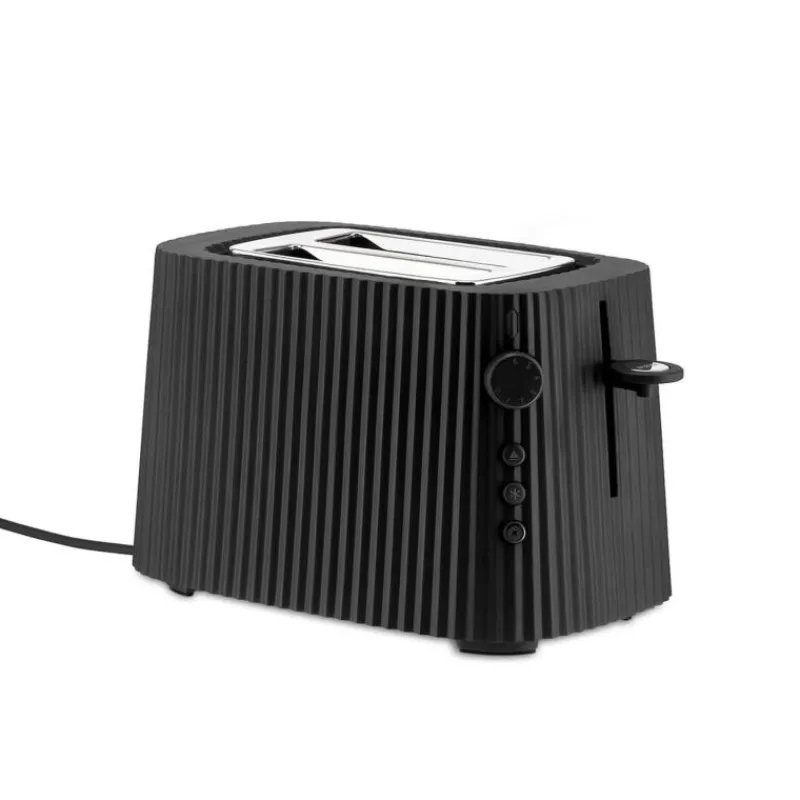 Der von Michele De Lucchi entworfene und aus thermoplastischem Harz gefertigte Plissé-Toaster in der Farbe Schwarz verbindet funktionale Aspekte mit einem plastischen und faszinierenden Design, das die Ausbildung des Autors zum Architekten sowie seine Leidenschaft für Handwerk und Skulptur offenbart. Ein Toaster wie ein von einem Modeschöpfer kreierten Kleid, ein wundervoller Gegenstand, der auf der Arbeitsplatte in der Küche zum Blickfang wird. Er überzeugt mit einer intuitiven Bedienung mit sechs Bräunungsgraden sowie Stopp-, Auftau- und Auwärmefunktion. Eine eingebaute Krümelschale erleichtert die Reinigung. Der Toaster besteht aus thermoplastischem Harz und ist 34 lang.