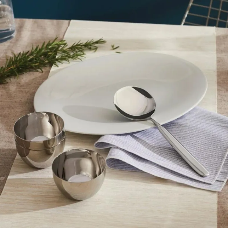 Der Risottolöffel IS01 von Alessi ist wie dafür geschaffen, das leckere Reisgericht behutsam und sicher umzurühren und zu servieren. Er kann aber auch für eine Vielzahl anderer Gerichte verwendet werden: leckere Gerichte wie Milchreis oder Porridge serviert er zuverlässig und stilsicher. Das schlichte Design des Löffels brachte ihm den ersten Preis bei einem Wettbewerb der Zeitschrift Domus ein, bei dem er für seine hohen funktionellen Anspruch und seine Ausdrucksstärke gelobt wurde. Der Servierlöffel ist 26 cm lang und für die Reinigung in der Spülmaschine geeignet.