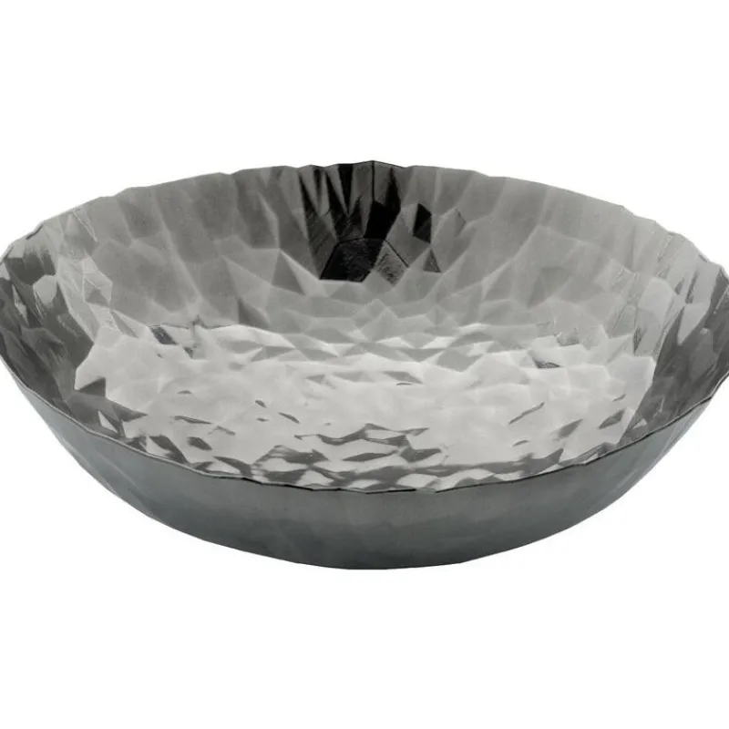 Der Entwurf dieser Schale wurde der Mailänder Designerin Claudia Raimondo konzeptualisiert, die sich in ihren Arbeiten unter anderem mit individuellen Oberflächenveredelungen beschäftigt. Der Stahl für ihre Serie „Joy“ für Alessi wird mithilfe eines modernen Formpressverfahrens veredelt, sodass die Oberfläche kaleidoskopartig reflektiert. So entsteht je nach Lichteinfall eine neue Spiegelung. Die Serie besteht aus zwei verschieden großen Schalen sowie einem Tablett.