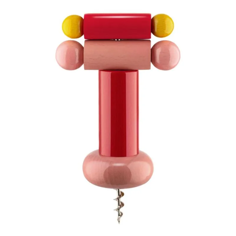 Mit dem aus Buchenholz gefertigten Korkenzieher aus der Sottsass Collection lässt Alessi jahrhundertealtes Handwerk wieder aufleben: er wird an einer Drechselbank mit einer klassischen Holzdrehtechnik hergestellt. Der Korkenzieher besteht aus verschiedenen, geometrischen Formen aus bunt lackiertem Buchenholz. Neben seiner Funktion als Flaschenöffner ist er auch ein verspieltes Tischaccessoire. Der Korkenzieher ist 18 cm lang und hat einen Durchmesser von 6 cm.