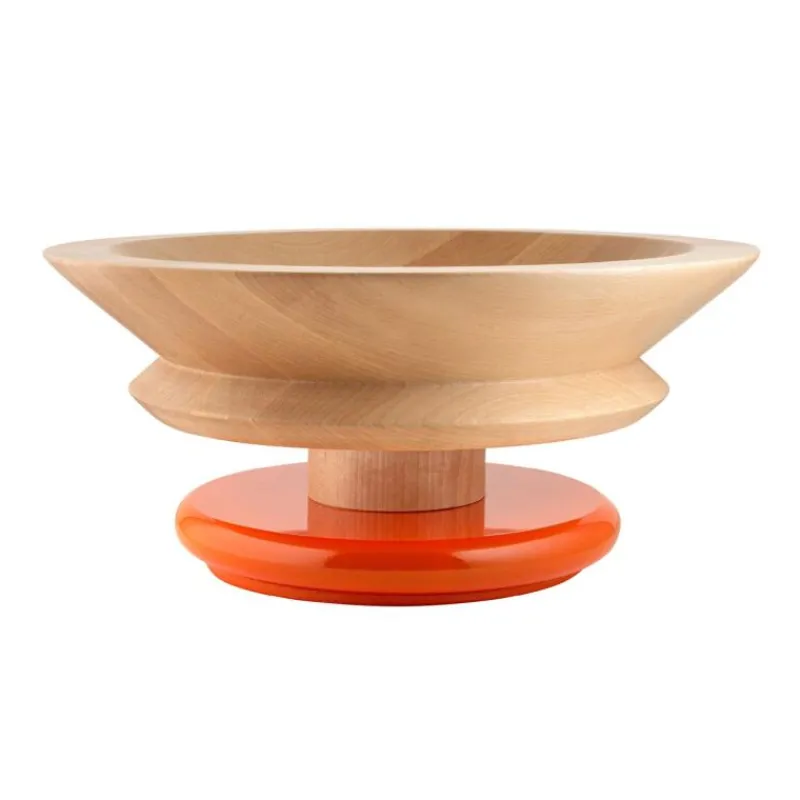 Mit der aus Lindenholz gefertigten Schale aus der Sottsass Collection lässt Alessi jahrhundertealtes Handwerk wieder aufleben: der Tafelaufsatz wird an einer Drechselbank mit einer klassischen Holzdrehtechnik hergestellt. Das Design aus unterschiedlichen Formen soll an einen im Boden verwurzelten Baum mit üppiger Krone erinnern. Das Lindenholz ist lebensmittelecht und kann daher als dekorative Aufbewahrung für Obst und Gemüse genutzt werden. Die Schale hat einen Durchmesser von 30 cm und ist 14 cm hoch.