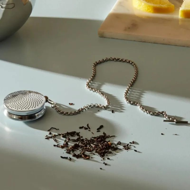 Mit dem T-Timepiece Tee-Ei von Alessi erwacht ein klassischer Wertgegenstand zu neuem Leben: das Design des Tee-Eies ist dem einer Taschenuhr nachempfunden. Der Designer Titus Wybenga hat ein Objekt entworfen, das sowohl im Alltag zu gebrauchen ist, aber auch die Qualität eines Schmuckstücks hat. T-Timepiece läd ein, eine Pause zu machen und einen Moment der Ruhe zu genießen. Das Tee-Ei ist für alle losen Teesorten geeignet, mit ihm kann der Tee individuell dosiert werden. Es besteht aus Edelstahl und ist 6 cm lang. Die einfache Bedienung und das attraktive Design macht T-Timepiece auch zu einem idealen Geschenk.