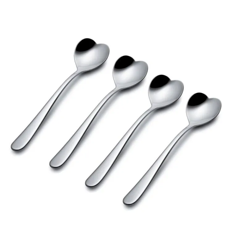 Gewohnt verspielt bereichert die Designerin Miriam Mirri mit dem Teelöffel ihre Objektfamilie, in deren Mittelpunkt das Herz steht. Die beiden abgerundeten Bögen des Herzes am Löffelrand dienen nicht nur der gestalterischen Funktion, mit ihnen lässt sich auch der Tee hervorragend umrühren. Die Löffel aus hochglänzend poliertem Edelstahl sind 14,5 cm lang und für die Reinigung in der Spülmaschine geeignet.