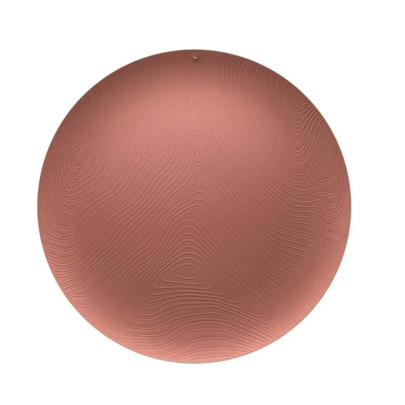 Die Designerin Patricia Uquiola hat mit der Serie Veneer für Alessi eine Reihe von Objekten entworfen, deren sanft geschwungenes Muster sich wie ein Schleier auf ihre Oberfläche legt. Die Textur des Tabletts ist der natürlichen Maserung von Holz nachempfunden und erzeugt dank der fließenden Linien, die sich auf seiner Oberfläche bewegen, fast eine optische Illusion. Das Tablett mit dem unverwechselbaren Grafikdesign besteht aus epoxidharzbeschichtetem Edelstahl und hat einen Durchmesser von 42 cm.