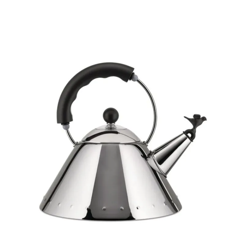 Zu den bekanntesten Entwürfen von Michael Graves gehört der Wasserkessel mit der vogelförmigen Flöte, der über 15 Jahre lang zu den bestverkauftesten Produkten bei Alessi gehörte. Der 1985 designte Edelstahlkessel beeindruckt durch die Verbindung verschiedener Einflüsse wie zum Beispiel Pop Art und Art Deco, die sich zu einer harmonischen Bildsprache verbinden. Durch den Magnetboden aus Edelstahl ist der Kessel auf für den Gebrauch auf Induktionsherden geeignet.