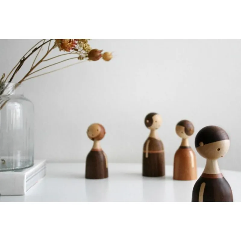 Die Serie Kin von Architectmade, die vom norwegischen Architekten Lars Fjetland Beller entworfen wurde, steht namentlich für den engsten Kreis von Freunden und Familie. Die Kollektion greift das moderne Verständnis auf, indem es eine individuelle Zusammenstellung von Familienmitgliedern erlaubt. Die Figuren, wie hier die Mutter, lassen sich frei zusammenstellen, um den einzigartigen Charakter jeder Familie abzubilden. Die Köpfe der Familienmitglieder lassen sich nach vorne und hinten kippen und auswechselbare Köpfe, die mit einem kleinen Holzstift zusammengehalten werden, erlauben die Darstellung von subtilen Emotionen. Die Mutter aus der Serie Kin besteht aus Walnuss-, Ahorn- sowie Mahagonieholz und ist 13,1 cm hoch.