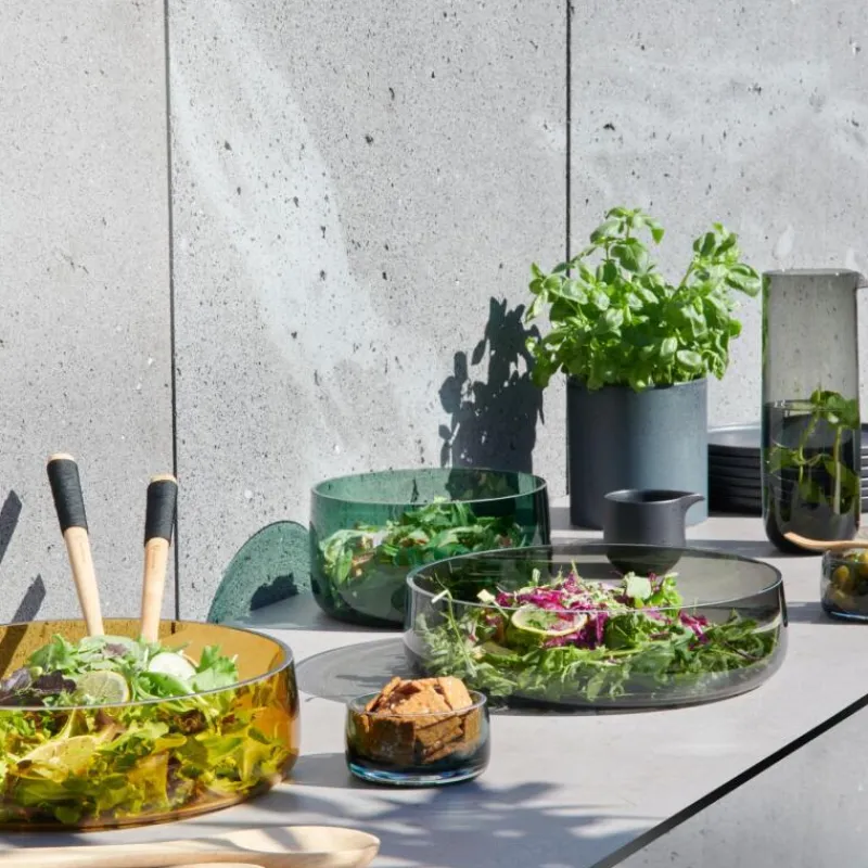 Das Wort Ajana kommt aus dem Äthiopischen und bedeuet „Die schöne Blume“ – ein passender Name für eine Glas-Kollektion, die sich durch meisterhafte, minimalistische Linienführung auszeichnet. Das durchgefärbte, mundgeblasene Glas der Schale verwandelt sie in ein Dekorationsobjekt voller Charakter, ihr dicker Glasboden trägt dazu bei, ihr ein besonders edles und hochwertiges Flair zu verleihen. Durchgefärbtes Glas, das durch die Vermischung von Farbpartikeln mit der flüssigen Glasmasse entsteht, ist ein langlebiges Material, das in der Spülmaschine gereinigt werden kann und trotzdem seine Farbe dauerhaft behält. Die Glasschale Ajana hat einen Durchmesser von 21,5 cm und ist 11 cm hoch. Sie lässt sich ideal als Obst- oder Servierschale nutzen, aber auch zum Dekorieren mit Blumen oder Zweigen ist sie hervorragend geeignet.