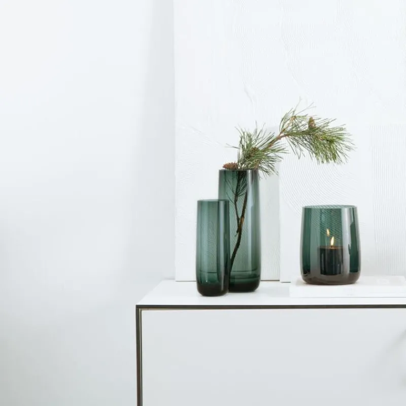 Das Wort Ajana kommt aus dem Äthiopischen und bedeuet „Die schöne Blume“ – ein passender Name für eine Glas-Kollektion, die sich durch meisterhafte, minimalistische Linienführung auszeichnet. Das durchgefärbte, mundgeblasene Glas der Vase verwandelt sie in ein Dekorationsobjekt voller Charakter, ihr dicker Glasboden trägt dazu bei, ihr ein besonders edles und hochwertiges Flair zu verleihen. Durchgefärbtes Glas, das durch die Vermischung von Farbpartikeln mit der flüssigen Glasmasse entsteht, ist ein langlebiges Material, das in der Spülmaschine gereinigt werden kann und trotzdem seine Farbe dauerhaft behält. Die Glasvase Ajana, die auch als Windlicht genutzt werden kann, hat einen Durchmesser von 14,5 cm und ist 18 cm hoch.