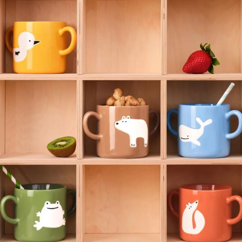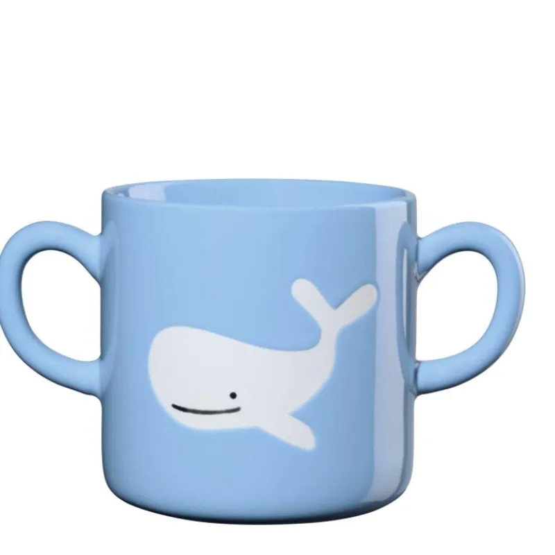 Die Buddies Henkelbecher von ASA versorgen die Jüngsten mit einer nachhaltigen und geschmacksneutralen Tasse. Die Henkelbecher mit seitlichen Griffen bestehen aus hochwertigem Porzellan, so lernen Kinder schon im frühen Alter Ess-Kultur sowie den sorgfältigen Umgang mit zerbrechlichen Gegenständen kennen. Das Material ist nicht nur besonders leicht und robust, es ist außerdem ofen-, gefrier- und mikrowellengeeignet und kann problemlos in der Spülmaschine gereinigt werden. Das jeweilige Motiv, wie hier ein niedlicher Wal, sind beidseitig aufgebracht, dass das Tier auch beim Benutzen betrachtet werden kann. Die Grundform des jeweiligen Tiers ist nicht glasiert, so wird der Henkelbecher auch zu einem interessanten, haptischen Erlebnis. Die Henkeltasse, die auch als Stiftehalter oder Snackbecher genutzt werden kann, ist das ideale Geschenk zur Geburt, zur Taufe oder zum Kindergeburtstag. Sie hat ein Volumen von 250 ml, ist 8,5 cm hoch und hat einen ebensogroßen Durchmesser.