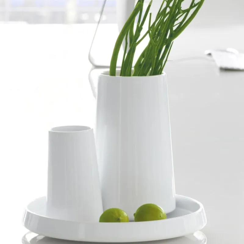 Ob farbenfroher Blumenstrauß oder minimalistische Zweige, die schlichte Vase der Serie Float passt sich jeder Dekoration an. Mit ihrer glänzend weißen Oberfläche aus Steingut ist sie ein ideales Dekorationsobjekt und besonders geeignet, um frische Blumen in Szene zu setzen. Die Vase hat einen Durchmesser von 16 cm und ist 27,5 cm hoch, erhältlich ist sie außerdem in zwei weiteren Größen. Besonders in einer Gruppe aus mehreren Vasen macht sie einen eleganten Eindruck und bereichert jedes Wohn- oder Esszimmer.