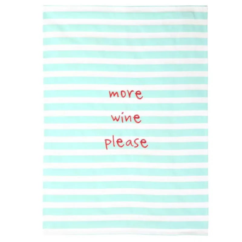 Das Textil-Geschirrtuch von ASA mit fröhlichem Streifen-Muster besteht aus reiner Baumwolle. Dadurch ist das Küchentuch sehr strapazierfähig und pflegeleicht, zudem ist es besonders saugfähig und angenehm weich auf der Haut. Mit seiner modernen Machart und dem lustigen Spruch More Wine Please ist dieses Geschirrtuch ein perfektes Mitbringel oder kleines Geschenk. Es hat die klassischen Maße 50 x 70 cm und ist in verschiedenen Farben und unterschiedlichen Sprüchen erhältlich.