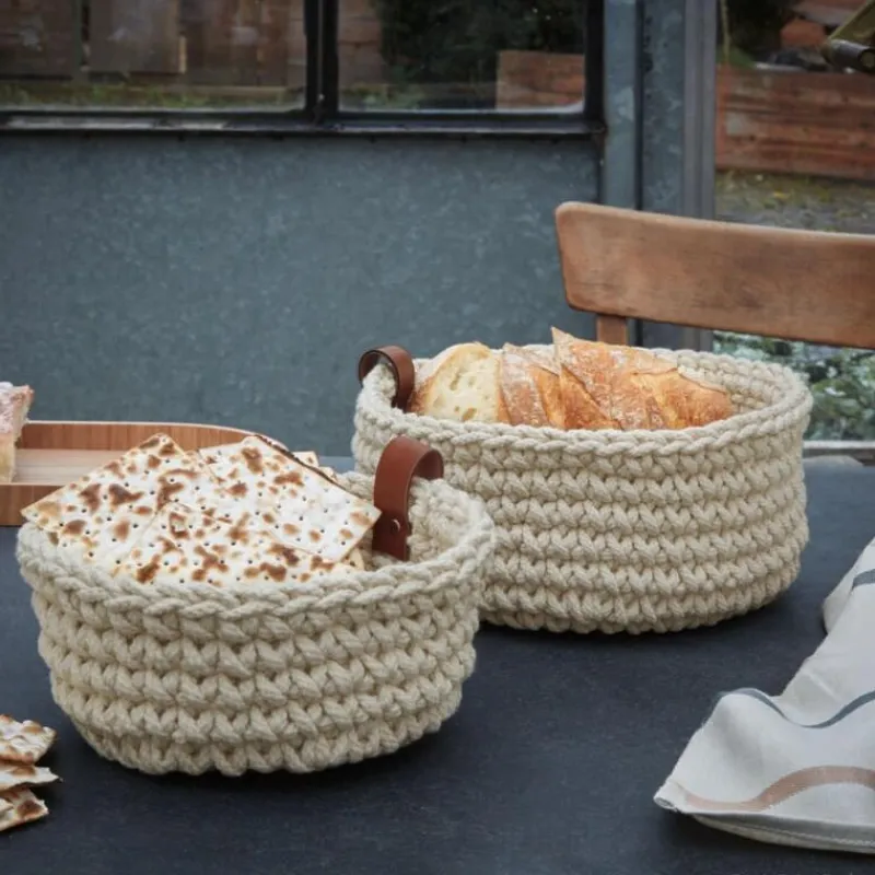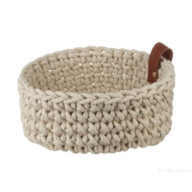Die modernen Häkelkörbe von ASA in Flechtoptik sind vielseitig einsetzbar. Ob als Brotkorb, als Schlüsselablage im Flur oder Aufbewahrung im Badezimmer, der Korb passt als schöner Blickfang in jedes Ambiente. Er besteht aus Baumwolle uns somit aus einem natürlichen Material. Zusätzlich ist er mit einer praktischen Lederschlaufe ausgestattet. Der Häkelkorb hat einen Durchmesser von 17 cm und ist 7 cm hoch.