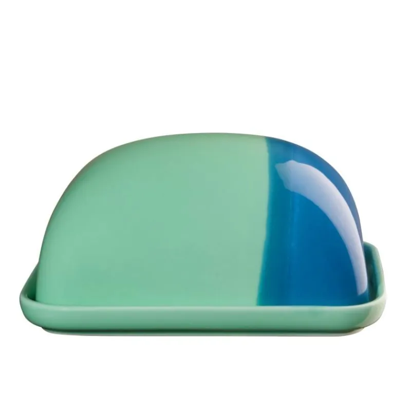 Hier ist der Name Programm: die farbenfrohe Kollektion Joy versprüht fröhliche Leichtigkeit und bringt mit ihren zweifarbigen Bechern, Tellern und anderem Geschirr Farbe in den grauen Alltag. Die Butterdose in der Farbe Blueberry Smoothie besteht aus zweifarbig glasiertem Porzellan. Sie ist geeignet für ein handelsübliches Stück Butter von 250 Gramm. Wie der Rest der Serie Joy kann die Butterdose in der Spülmaschine gereinigt werden, ist mikrowellen-, gefrier- und ofengeeignet. Die stylische Butterdose liegt mit ihrer abgerunden Form gut in der Hand und macht am morgendlichen Frühstückstisch, zum Geburtstag oder Frühlingsfest einfach gute Laune! Die Butterdose ist 7 cm hoch, 15,5 cm lang und 12,5 cm breit.