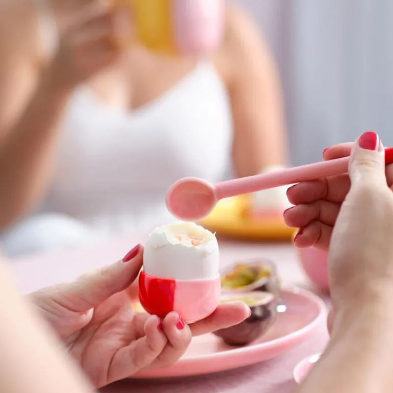 Hier ist der Name Programm: die farbenfrohe Kollektion Joy versprüht fröhliche Leichtigkeit und bringt mit ihren zweifarbigen Bechern, Tellern und anderem Geschirr Farbe in den grauen Alltag. Die Eierbecher in der Farbe Passionfruit Smoothie bestehen aus zweifarbig glasiertem Porzellan. Der rundliche Eierbecher ist perfekte Möglichkeit, gekochte Eier zum Frühstück zu servieren. Er nimmt auf dem gedeckten Tisch nicht viel Platz ein und speichert die Wärme besser als beispielsweise ein Eierbecher aus Holz, sodass das leckere Frühstücksei nicht so schnell auskühlt. Wie der Rest der Serie Joy können die Eierbecher in der Spülmaschine gereinigt werden, sind mikrowellen-, gefrier- und ofengeeignet. Am morgendlichen Frühstückstisch, zum Geburtstag oder Frühlingsfest macht die Kollektion Joy einfach gute Laune! Die Eierbecher haben einen Durchmesser von 4,7 cm und sind 3 cm hoch.