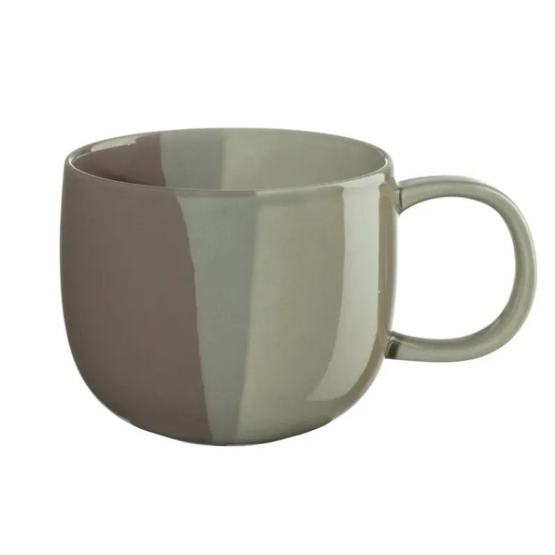 Hier ist der Name Programm: die Kollektion Joy versprüht fröhliche Leichtigkeit und bringt mit ihren zweifarbigen Bechern, Tellern und anderem Geschirr Farbe in den grauen Alltag. Der Henkelbecher in der Farbe Cocoa Pistachio besteht aus zweifarbig glasiertem Porzellan. Mit ihm lassen sich Heißgetränke wie Kaffee, Tee oder Kakao stilecht servieren und genießen. Wie der Rest der Serie Joy kann der Becher in der Spülmaschine gereinigt werden, ist mikrowellen-, gefrier- und ofengeeignet. Der stylische Becher liegt mit seiner runden Form gut in der Hand und macht am morgendlichen Frühstückstisch, zum Geburtstag oder Frühlingsfest einfach gute Laune! Der Becher hat ein Volumen von 400 ml, ist 8,5 cm hoch und hat einen Durchmesser von 10 cm.