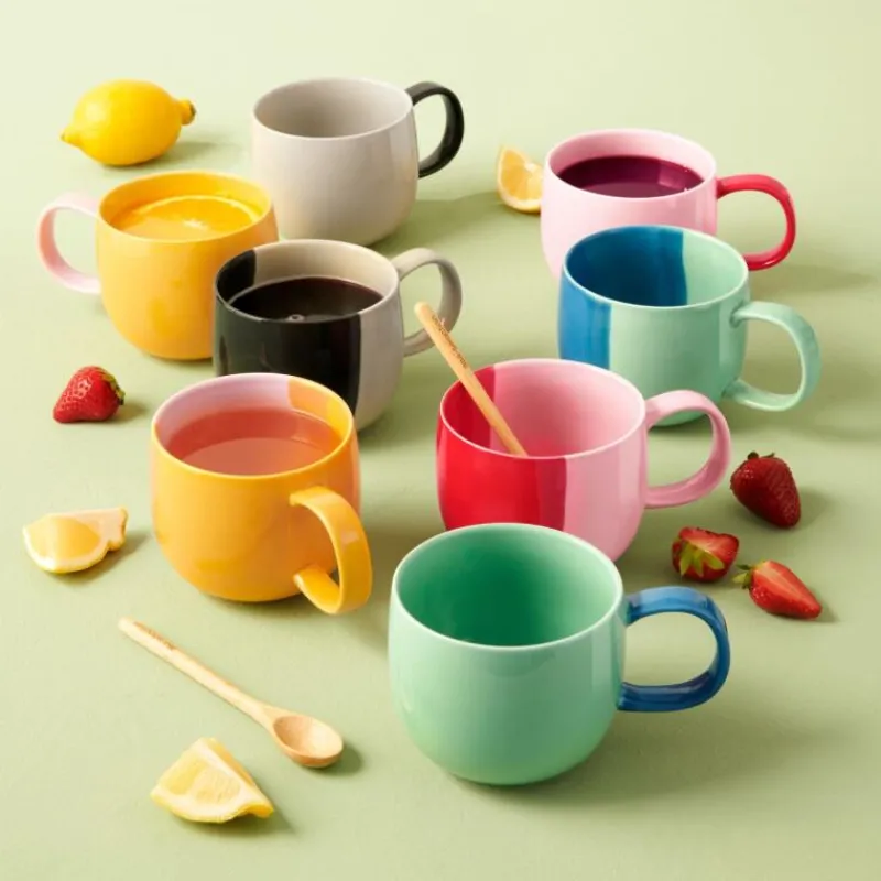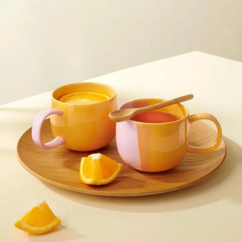 Hier ist der Name Programm: die farbenfrohe Kollektion Joy versprüht fröhliche Leichtigkeit und bringt mit ihren zweifarbigen Bechern, Tellern und anderem Geschirr Farbe in den grauen Alltag. Der Henkelbecher in der Farbe Passionfruit Smoothie besteht aus zweifarbig glasiertem Porzellan. Mit ihm lassen sich Heißgetränke wie Kaffee, Tee oder Kakao stilecht servieren und genießen. Wie der Rest der Serie Joy kann der Becher in der Spülmaschine gereinigt werden, ist mikrowellen-, gefrier- und ofengeeignet. Der stylische Becher liegt mit seiner runden Form gut in der Hand und macht am morgendlichen Frühstückstisch, zum Geburtstag oder Frühlingsfest einfach gute Laune! Der Becher hat ein Volumen von 400 ml, ist 8,5 cm hoch und hat einen Durchmesser von 10 cm.