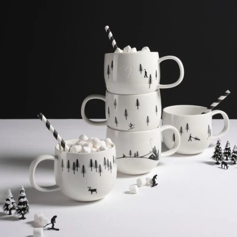 Im Winter erscheint die Natur mit ihren weißen Schneelandschaften, den kahlen Bäumen und dem grauen Himmel fast schwarz-weiß. Die Kollektion Snow Tracks erzählt Geschichten von Mensch und Tier, deren Spuren anhand der sandgestrahlten Gravur fühl- und sichtbar nachzuverfolgen sind. Der Henkelbecher aus Porzellan mit Tannenbaum-Motiv ist 8,5 cm hoch, hat Er kann in der Spülmaschine gereinigt werden und ist mikrowellen- und gefriergeeignet. Zudem liegt er gut in der Hand und schmeichelt sowohl Links-als auch Rechtshändern. Dem Genuß von heißem Kakao, Tee oder Kaffee steht also nichts mehr im Weg!