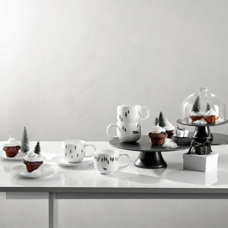 Im Winter erscheint die Natur mit ihren weißen Schneelandschaften, den kahlen Bäumen und dem grauen Himmel fast schwarz-weiß. Die Kollektion Snow Tracks erzählt Geschichten von Mensch und Tier, deren Spuren anhand der sandgestrahlten Gravur fühl- und sichtbar nachzuverfolgen sind. Der Henkelbecher aus Porzellan mit Tannen-Motiv ist 8,5 cm hoch, er kann in der Spülmaschine gereinigt werden und ist mikrowellen- und gefriergeeignet. Zudem liegt er gut in der Hand und schmeichelt sowohl Links-als auch Rechtshändern. Dem Genuß von heißem Kakao, Tee oder Kaffee steht also nichts mehr im Weg!