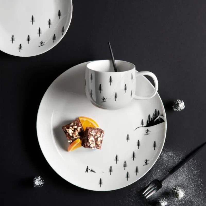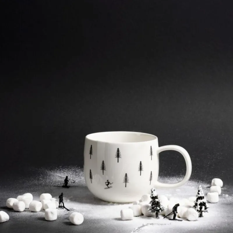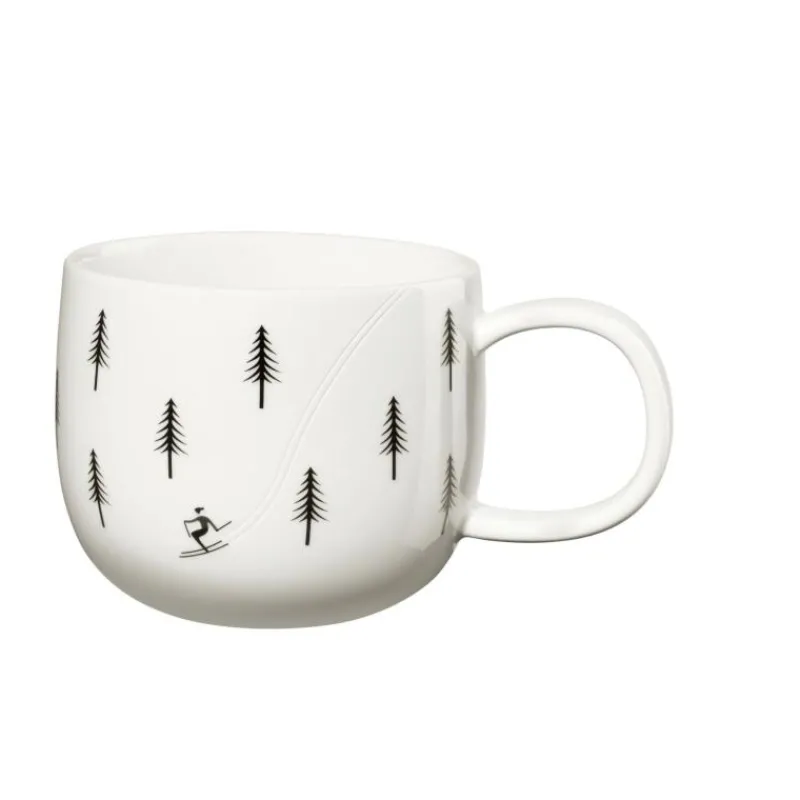 Im Winter erscheint die Natur mit ihren weißen Schneelandschaften, den kahlen Bäumen und dem grauen Himmel fast schwarz-weiß. Die Kollektion Snow Tracks erzählt Geschichten von Mensch und Tier, deren Spuren anhand der sandgestrahlten Gravur fühl- und sichtbar nachzuverfolgen sind. Der Henkelbecher aus Porzellan mit Skifahrer-Motiv ist 8,5 cm hoch, hat Er kann in der Spülmaschine gereinigt werden und ist mikrowellen- und gefriergeeignet. Zudem liegt er gut in der Hand und schmeichelt sowohl Links-als auch Rechtshändern. Dem Genuß von heißem Kakao, Tee oder Kaffee steht also nichts mehr im Weg!