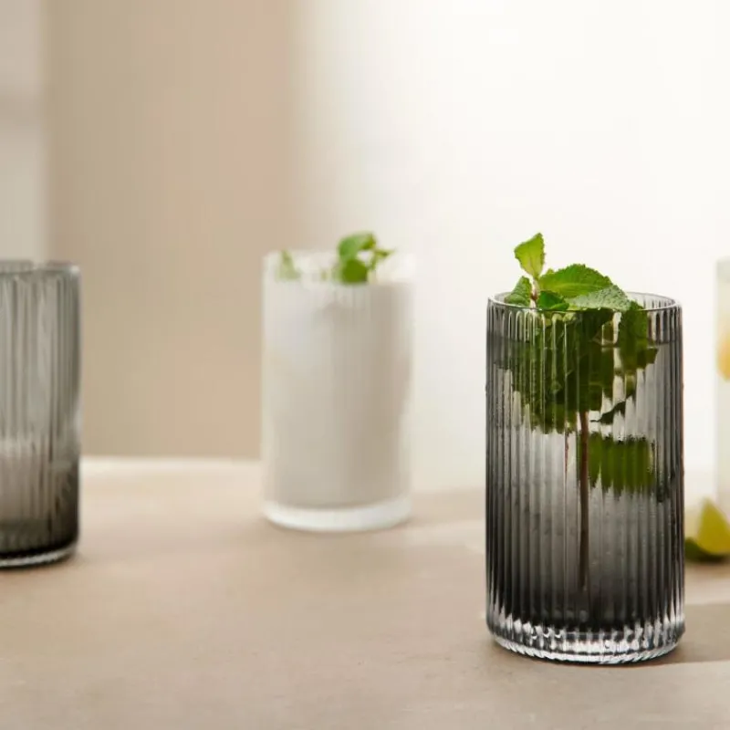 Das mundgeblasene Trinkglas aus der Serie Juna setzt sich mit seinem hochaktuellen Rillenmuster und der kompakten Größe zeitgemäß und individuell in Szene. Seine zylindrische Form liegt gut in der Hand; das Volumen von 280 ml ist ideal zum Servieren von alkoholhaltigen Longdrinks oder alkoholfreien Erfrischungen geeignet. Mit seinem klaren Design, dem transparenten Grau und der modernen Gestaltung ist das Juna Glas ein unverzichtbares Glanzstück jeder Hausbar. Es hat ein Volumen von 280 ml, ist 12 cm hoch und hat einen Durchmesser von 6,8 cm.