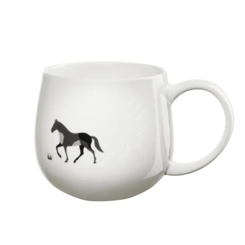Die Henkelbecher der Kollektion Magu von ASA erzählen kleine Geschichten geliebter Haus- und Hoftiere anhand einer sandgestrahlten Gravur in Form von Pfoten- oder Hufspuren, die spür- und sichtbar nachzuverfolgen sind. Der Henkelbecher mit Pferde-Motiv ist 9,5 cm hoch und hat einen Durchmesser von 10,2 cm. Er kann in der Spülmaschine gereinigt werden und ist mikrowellen- und gefriergeeignet. Zudem liegt er gut in der Hand und schmeichelt sowohl Links-als auch Rechtshändern. Dem Genuß von heißem Kakao, Tee oder Kaffee steht also nichts mehr im Weg!