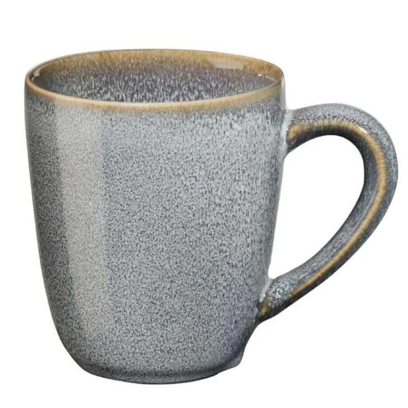 Der Henkelbecher in der Farbe Denim besteht aus Steingut, dessen randablaufende Glasur ihm einen lebendigen Charakter verleiht. Mit dem Henkelbecher lassen sich Heißgetränke wie Kaffee, Tee oder Kakao stilecht servieren und genießen. Wie der Rest der Serie Saisons kann er in der Spülmaschine gereinigt werden, ist mikrowellen-, gefrier- und ofengeeignet. Das moderne, puristische Design in Verbindung mit dem robusten Material macht die Serie Saisons zum beliebten Allrounder, der perfekt in den Alltag passt, aber auch bei besonderen Anlässen festlich gedeckt werden kann.