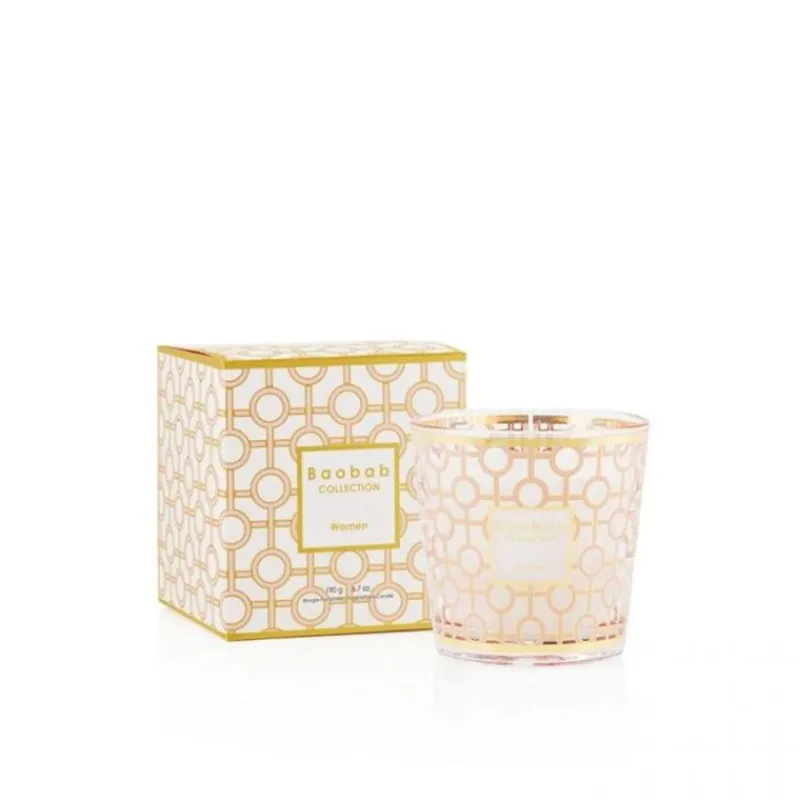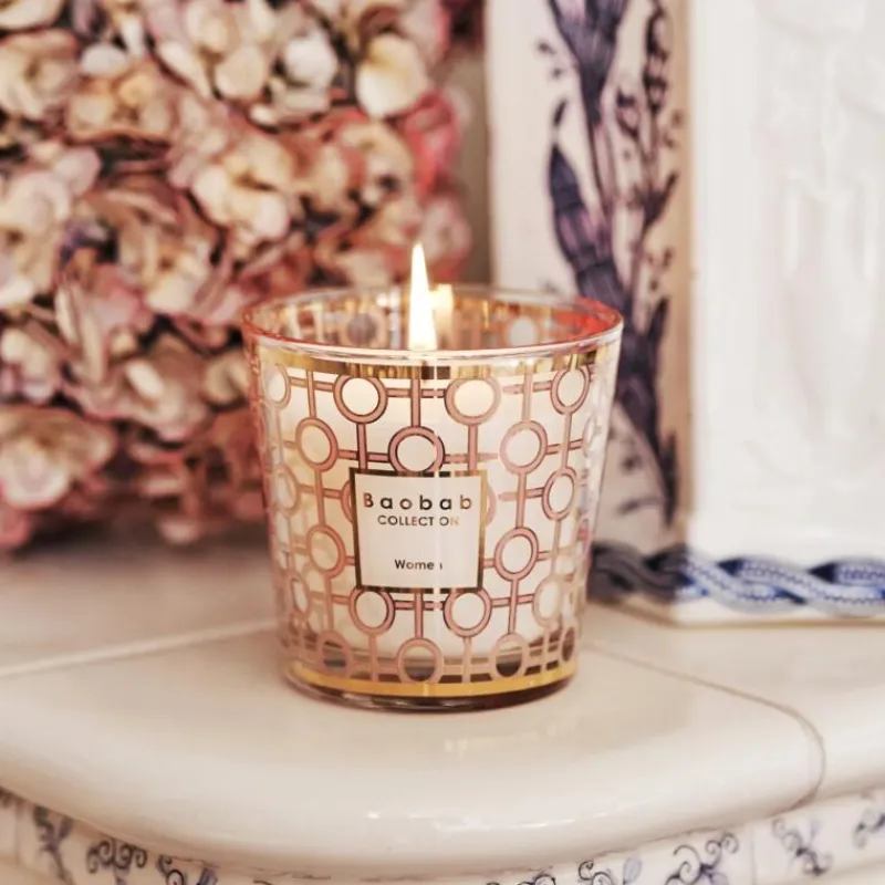 Die Duftkerze Women befindet sich in einem klaren mundgeblasenem Glas mit rofasarbenem und goldenen Muster. Die Kopfnote des Duftes Women besteht aus Moschus, die Basisnote enthält Rose und Magnolie. Die Kerze ist 6,5 cm hoch und hat einen Durchmesser von 9 cm. Bei korrekter Benutzung der Duftkerze hat sie eine Brenndauer von etwa 30 Stunden. Die Verwendung von einem kräftigen Docht aus ägyptischer Baumwolle sorgt für eine angenehmen und gleichmäßige Raumbeduftung.