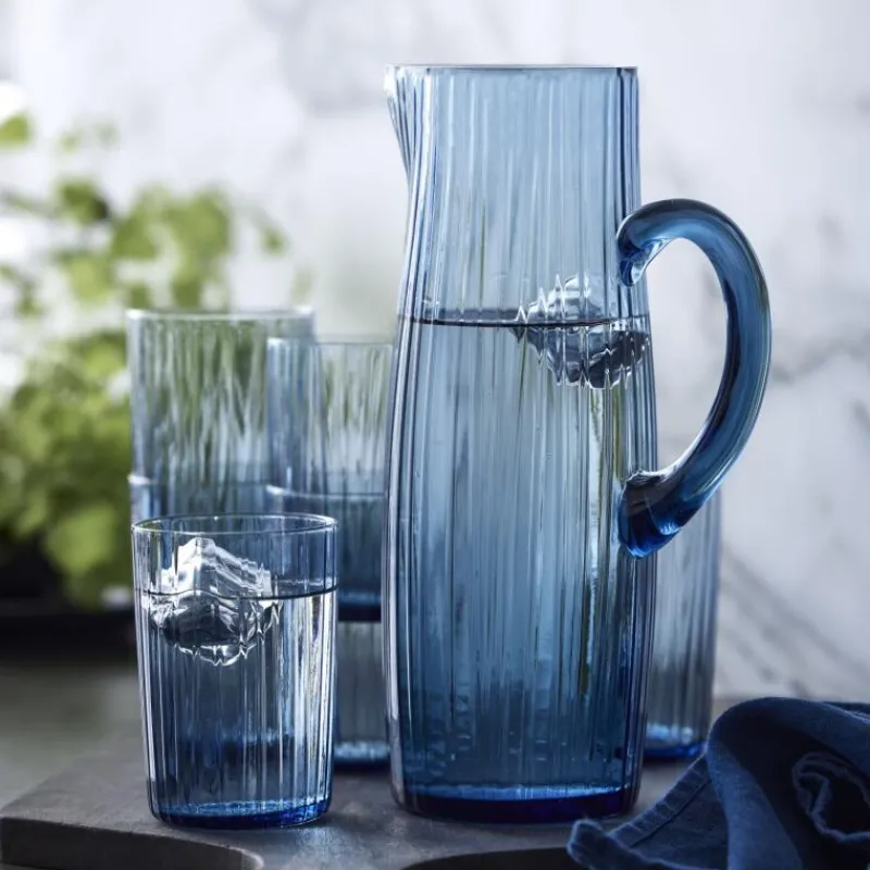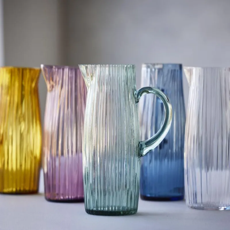 Erfrischende Getränke serviert in den Glaskannen aus der rustikalem Glas-Serie Kusintha vom dänischen Hersteller Bitz. Die Kanne mit Henkel im rustikalen Look begeistert zeitgleich mit ihrem schlichten und zeitlosen Design. Die Farben lassen sich ideal mit den Produkten der Steingut-Serie des Herstellers kombinieren, bei der die reaktive Glasur jedem Produkt seinen eigenen, einzigartigen Look verleiht. Die Tülle des Gefäßes erleichtert das gezielte Ausgießen der Flüssigkeit. Gemäß des Credos von Bitz, dass gesündere Ernährung Spaß machen soll, macht der Krug Lust auf ein erfrischendes Glas Wasser und schmückt zugleich den Tisch. Der Krug ist 25 cm hoch und hat einen Durchmesser von 9 cm.