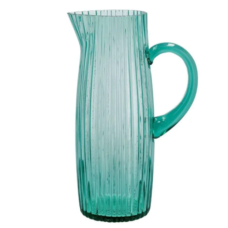 Erfrischende Getränke serviert in den Glaskannen aus der rustikalem Glas-Serie Kusintha vom dänischen Hersteller Bitz. Die Kanne mit Henkel im rustikalen Look begeistert zeitgleich mit ihrem schlichten und zeitlosen Design. Die Farben lassen sich ideal mit den Produkten der Steingut-Serie des Herstellers kombinieren, bei der die reaktive Glasur jedem Produkt seinen eigenen, einzigartigen Look verleiht. Die Tülle des Gefäßes erleichtert das gezielte Ausgießen der Flüssigkeit. Gemäß des Credos von Bitz, dass gesündere Ernährung Spaß machen soll, macht der Krug Lust auf ein erfrischendes Glas Wasser und schmückt zugleich den Tisch. Der Krug ist 25 cm hoch und hat einen Durchmesser von 9 cm.