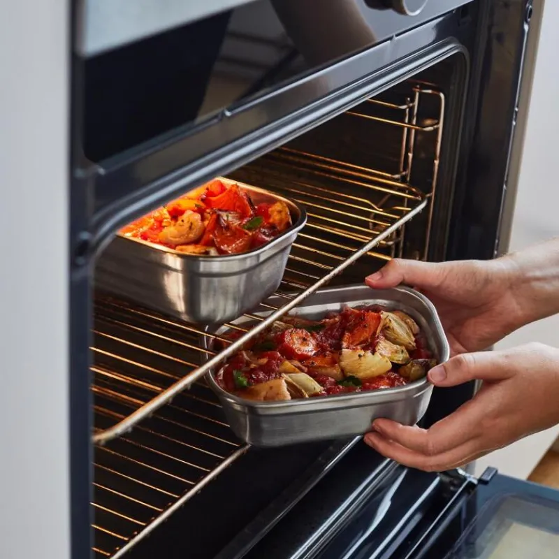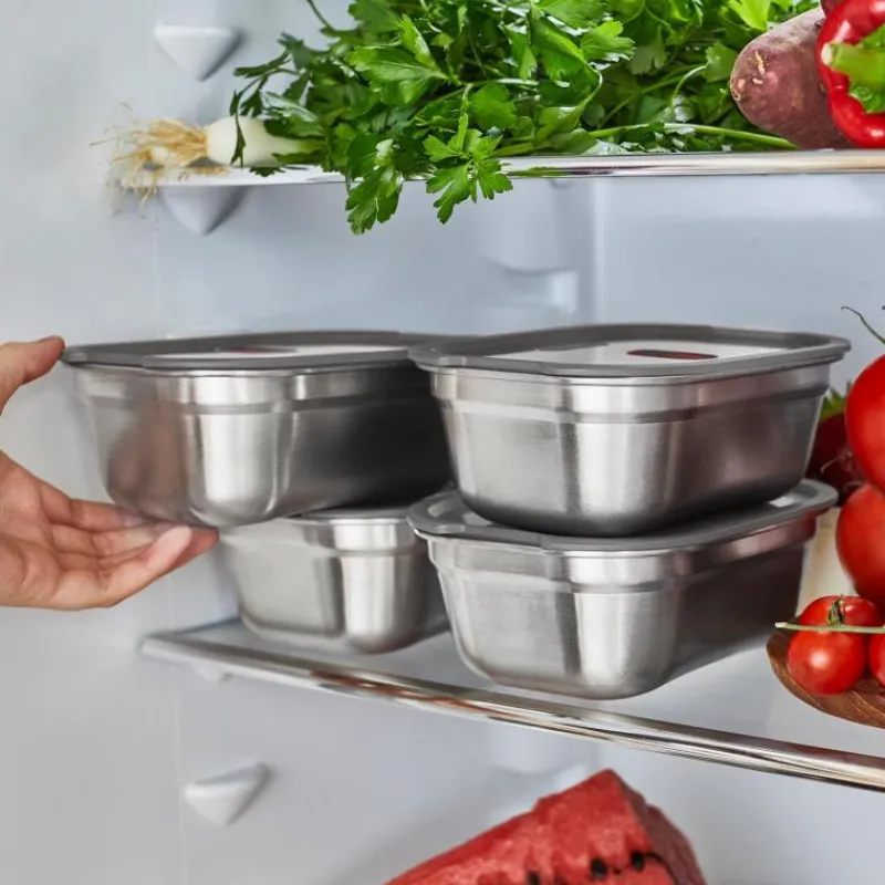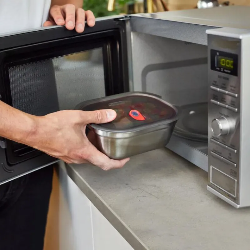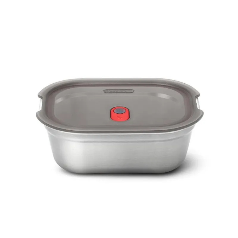 Die erste mikrowellengeeignete 3-in-1-Lunchbox des beliebten britischen Herstellers Black+Blum ist gleichzeitig Lunch-Box und Auflaufform und dient zur Aufbewahrung von Lebensmitteln. Sie wird aus langlebigem Edelstahl und Polypropylen hergestellt und die Vakuumversiegelung sowie die doppelte Silikonlippe sorgen für eine auslaufsichere und luftdichte Aufbewahrung. Die Multifunktionsbox ist sowohl backofen- und gefriergeeignet, als auch spülmaschinengeeignet.Daher eignet sie sich ideal zur Vorbereitung und zur Lagerung von Lebensmitteln, wie etwa zum Meal Prep, also dem Vorkochen und Vorbereiten von Essen für meist mehrere Tage. Da die Vakumversiegelung auch als Dampfventil z.B. in der Mikrowelle dient, kann man die Box zur Mitnahme von Gerichten und dem anschließenden Erwärmen nutzen, ohne das Essen mehrmals umzufüllen. Die Box ist 19,7 cm lang, 14,3 cm breit und 7,1 cm hoch.