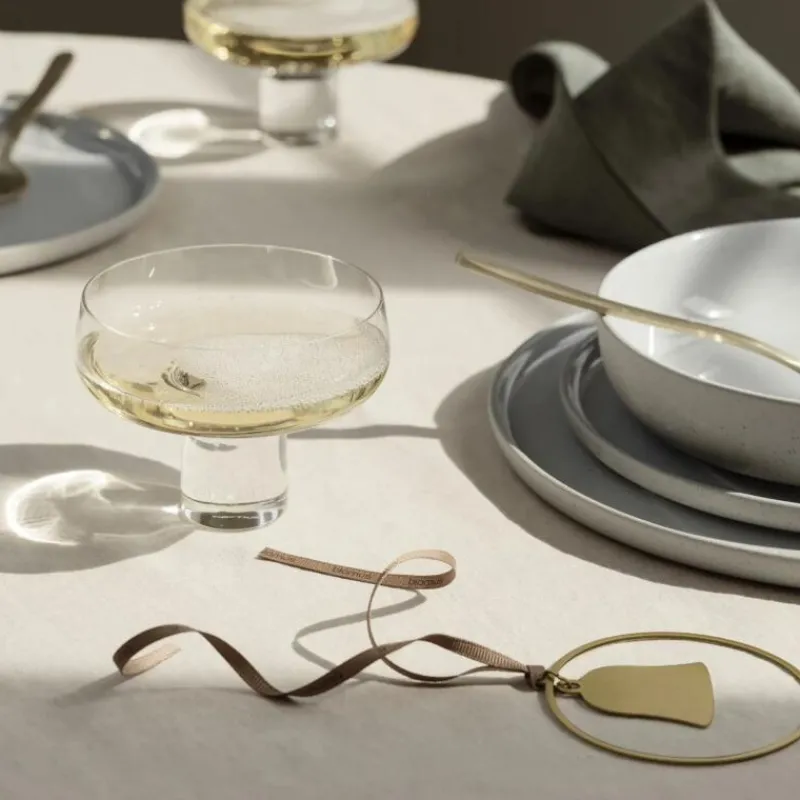 Kitai bedeutet auf japanisch Erwartung, Vorfreude oder Hoffnung – genau diese Gefühle soll der Weihnachtsschmuck der gleichnamigen Serie erwecken. Designerin Theresa Rand setzt auf eine unverwechselbare Kombination aus nordisch-hyggeliger Ästhetik und deutscher Vorliebe für Qualität und Funktionalität. So entstanden fast poetische Dekorations-Objekte, die mit minimalistischer Form, einladenden Materialien und zurückhaltenden Farben eine wohlige Atmosphäre erzeugen. Im matt-goldfarbenen Ring aus messingüberzogenem Eisen schwebt eine mattgoldfarbener Glocke, die den Kerzenschein am Weihnachtsbaum sanft reflektiert und so zu einer modernen Version der klassischen Baumkugel wird. Im Set enthalten sind vier Glocken im Ring, die einen Durchmesser von 8 cm haben und 8,5 cm hoch sind.