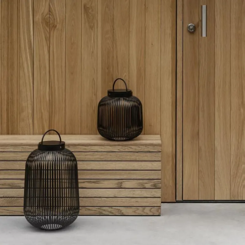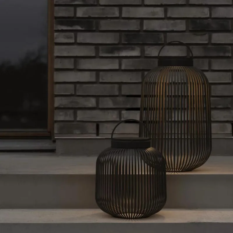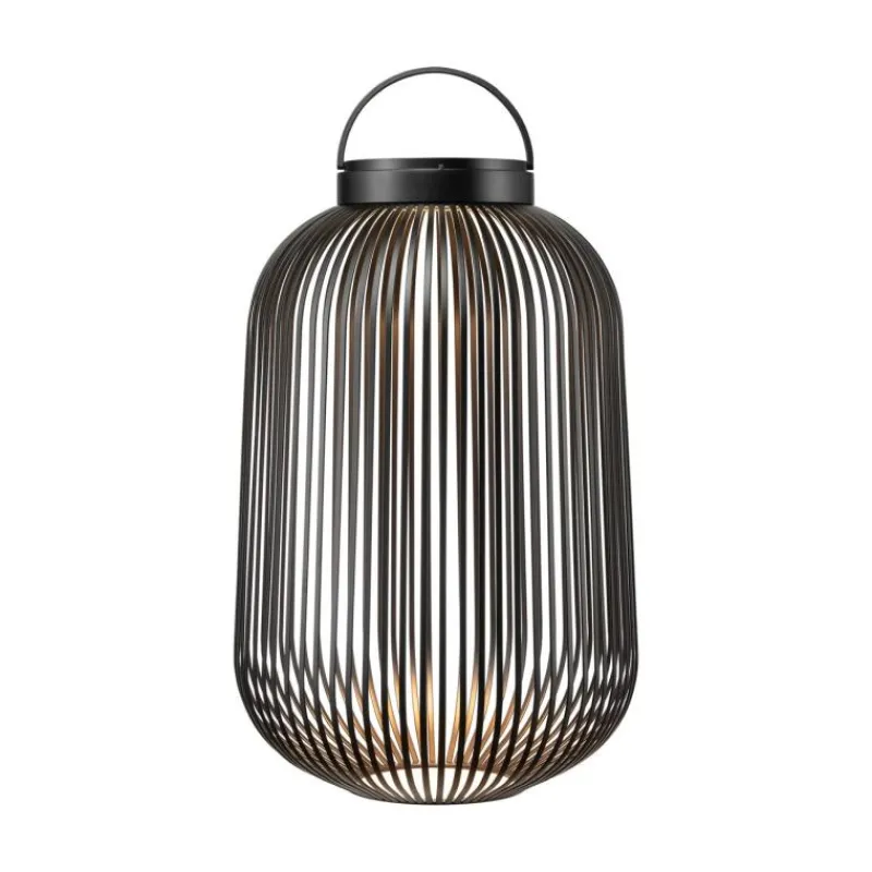 Stimmungsvolle Atmosphäre und wunderschöne Lichteffekte auch im Garten oder auf dem Balkon erzeugt die mobile LED-Leuchte Lito L in der Farbe Schwarz von Blomus. Sie besteht aus pulverbeschichtetem Stahl, dessen schmale Streben eine stilvolle Leichtigkeit vermitteln. Das Leuchtelement sitzt direkt unter dem Griff und lässt sich mit einem Touch-Sensor in drei verschiedenen Lichtfarben einstellen und dimmen. Die über den Magnetanschluss per USB aufladbare Laterne hat eine Betriebszeit von bis zu 60 Stunden, so steht einem gemütlichen Abend mit Freunden und Familie nichts mehr im Weg. Das Leuchtmittel ist nicht austauschbar, hat aber eine lange Lebensdauer von über 20.000 Stunden. Ein besonders schönes Bild gibt die Leuchte in einer Gruppe aus mehreren Laternen ab, denn sie ist in verschiedenen Größen und Farben erhältlich. In Der Größe L ist sie 49 cm hoch und hat einen Durchmesser von 31 cm.