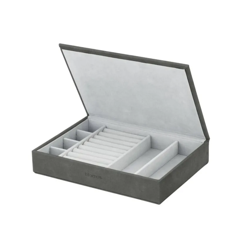 Die Blomus Sahla Schmuckaufbewahrungsbox vereint Eleganz und Funktionalität in einem exquisiten Design. Hergestellt aus hochwertigem PU-Wildleder, bietet diese edle Box eine stilvolle Aufbewahrungslösung für Ihre wertvollsten Schmuckstücke. Das weiche, samtartige Material schützt Ihren Schmuck vor Kratzern und Beschädigungen, während die geschmackvolle Farbgebung einen Hauch von Luxus in Ihr Zuhause bringt. Die großzügigen Fächer der Schmuckaufbewahrungsbox ermöglichen eine ordentliche und übersichtliche Organisation Ihrer Ringe, Ohrringe, Halsketten und Armbänder. Ideal für den täglichen Gebrauch oder als elegantes Geschenk – die Blomus Sahla Schmuckaufbewahrungsbox ist nicht nur ein praktisches Accessoire, sondern auch ein stilvolles Wohnaccessoire, das jedem Raum eine besondere Note verleiht. Entscheiden Sie sich für Qualität und Stil mit dieser exklusiven Schmuckaufbewahrung. In der kleinen Variante ist die Box 4cm hoch, 22 cm breit und 15,5 cm tief.