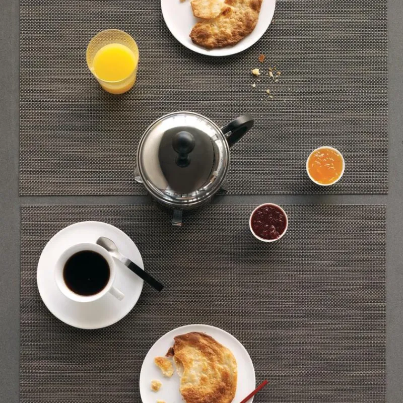 Die formschönen Tischsets von Chilewich werden aus hochwertigem und langlebigem Kunststoff-Garn auf Industriewebstühlen gewebt. Dadurch sind sie langlebiger und umweltschonender als herkömmliche Tischsets aus gepresstem Kunststoff, zumal bei der Herstellung der Garne auf künstliche Weichmacher und Schwermetalle verzichtet wird. Außerdem enthalten sie einen patentierten, antimikrobiellen Schutz, der über die gesamte Lebensdauer des Tischsets anhält. Die Tischsets von Chilewich werden in einer Vielzahl von Techniken, Oberflächen und Details hergestellt. Saisonale Farben und neue Muster sorgen jedes Jahr dafür, dass immer wieder aufs neue dekoriert werden kann.