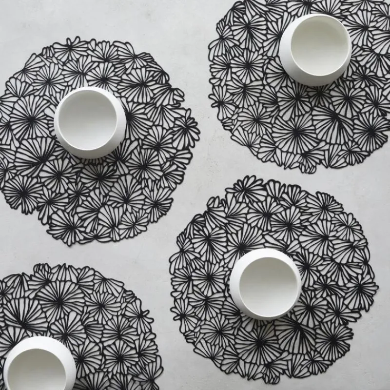 Tischset Pressed Vinyl Daisy Round Black von Chilewich