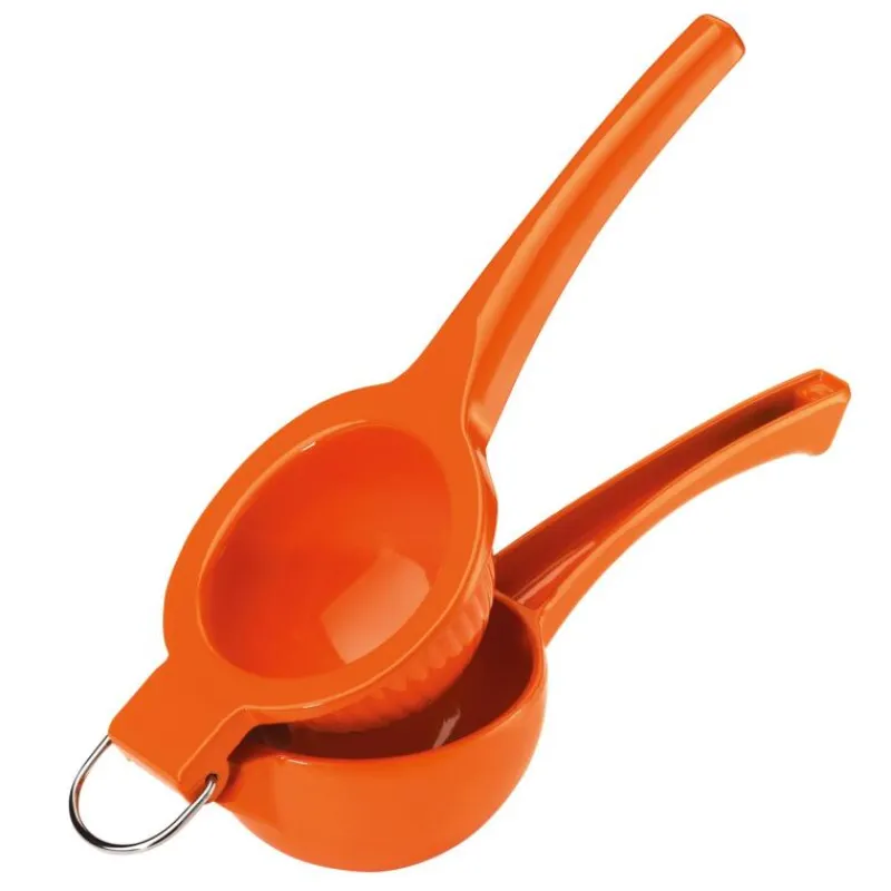 Was macht eine perfekte Zitruspresse aus? Arancia ermöglicht müheloses Auspressen dank ihrer idealen Form und überzeugt mit einfacher Handhabung und robustem Material. So steht dem sommerlichen Vitamin-Genuß nichts mehr im Weg und Sie haben stets frisch gepressten Saft zur Hand. Während des Pressens werden Kerne zuverlässig aufgefangen, außerdem ist Arancia mit einer Aufhänge-Öse für eine praktische Aufbewahrung ausgestattet. Dank ihrer glatten Oberfläche aus lackiertem Metall lässt sich die Presse leicht reinigen. Arancia ist 23,3 cm lang und 9,2 cm breit.