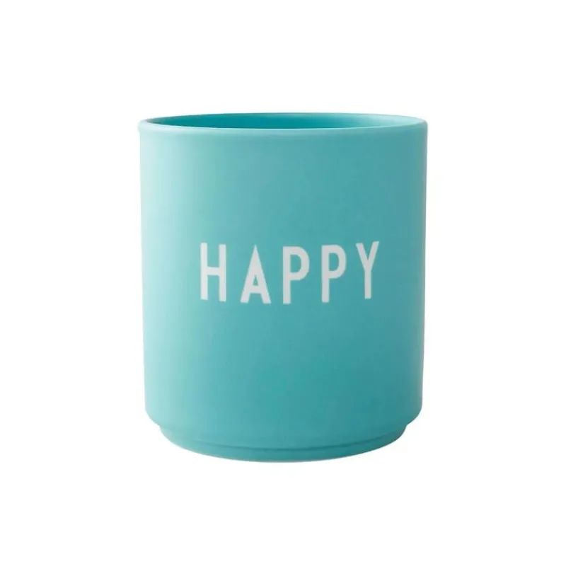 Die schnörkellose und geradlinige Typographie, die Arne Jacobsen 1937 entwarf, ist noch heute ein modernes und dekoratives Dekor für die Porzellanbecher der Firma Design Letters. Der türkisfarbene Becher aus Fine Bone China mit der Aufschrift Happy ist nicht nur in der Küche ein edler Blickfang, sondern eignet sich auch auf dem Schreibtisch zum Halten von Stiften oder im Badezimmer als Ablage für kleine Alltagsgegenstände. Der Becher ist neun Zentimeter hoch und hat einen Durchmesser von 8,3 cm. Er hat ein Fassungsvermögen von 325 ml und ist für die Reinigung in der Spülmaschine geeignet.