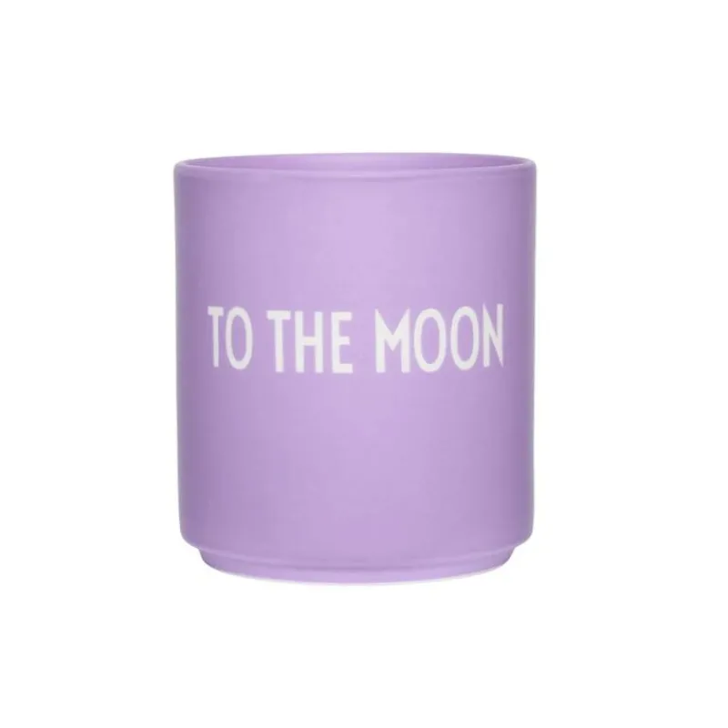 Die schnörkellose und geradlinige Typographie, die Arne Jacobsen 1937 entwarf, ist noch heute ein modernes und dekoratives Dekor für die Porzellanbecher der Firma Design Letters. Der lilafarbene Becher aus Fine Bone China mit der Aufschrift To the moon ist nicht nur in der Küche ein edler Blickfang, sondern eignet sich auch auf dem Schreibtisch zum Halten von Stiften oder im Badezimmer als Ablage für kleine Alltagsgegenstände. Der Becher ist neun Zentimeter hoch und hat einen Durchmesser von 8,3 cm. Er hat ein Fassungsvermögen von 325 ml und ist für die Reinigung in der Spülmaschine geeignet.
