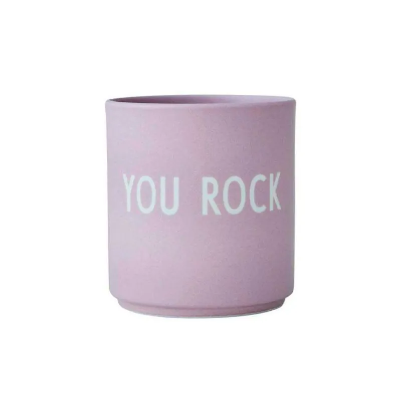 Die schnörkellose und geradlinige Typographie, die Arne Jacobsen 1937 entwarf, ist noch heute ein modernes und dekoratives Dekor für die Porzellanbecher der Firma Design Letters. Der lavendelfarbene Becher aus Fine Bone China mit der Aufschrift You Rock ist nicht nur in der Küche ein edler Blickfang, sondern eignet sich auch auf dem Schreibtisch zum Halten von Stiften oder im Badezimmer als Ablage für kleine Alltagsgegenstände. Der Becher ist neun Zentimeter hoch und hat einen Durchmesser von 8,3 cm. Er hat ein Fassungsvermögen von 325 ml und ist für die Reinigung in der Spülmaschine geeignet.