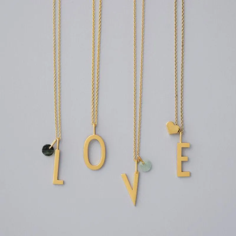 Die schnörkellose und geradlinige Typographie, die Arne Jacobsen 1937 entwarf, ist noch heute ein modernes und dekoratives Dekor für die Produkte der Firma Design Letters. Jetzt wird die Produtpalette um die beliebten Buchstaben aus Dänemark noch um hochwertigen Schmuck erweitert. Dabei werden ausschließlich hochwertige Materialien wie 925er Sterling Silber und farbenfrohe Halbedelsteine verwendet. Buchstaben in zwei verschiedenen Größen lassen sich zu ganz persönlichem Halsschmuck kombinieren, niedliche Anhänger vervollständigen den skandinavischen Look. Dazu passend kan n man zwischen Schmuckketten in zwei Längen auswählen.