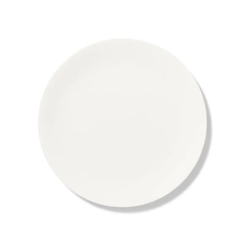 Puristisch, zurückhaltend und ästhetisch – so lässt sich die Serie Pure von Dibbern beschreiben. Alle Teile der Kollektion sind darauf ausgelegt, möglichst funktional, langlebig und vielseitig zu sein. Der nahtlose Übergang zwischen Spiegel und Fahne des Tellers bringt die Besonderheiten des Materials Knochenporzellan voll zur Geltung. Die Eignung für die Mikrowelle und Spülmaschine trägt dazu bei, die Serie Pure zum lebenslangen Begleiter zu machen. Der flache Teller mit einem Durchmesser von 26 cm ist etwas kleiner als ein klassischer Speiseteller, wird aber mit seiner flachen Formgebung trotzdem gerne zum Anrichten von Hauptspeisen benutzt. Aufgrund seines etwas geringeren Durchmessers liegt er besser in der Hand und kann leichter in der Spülmaschine verstaut werden.